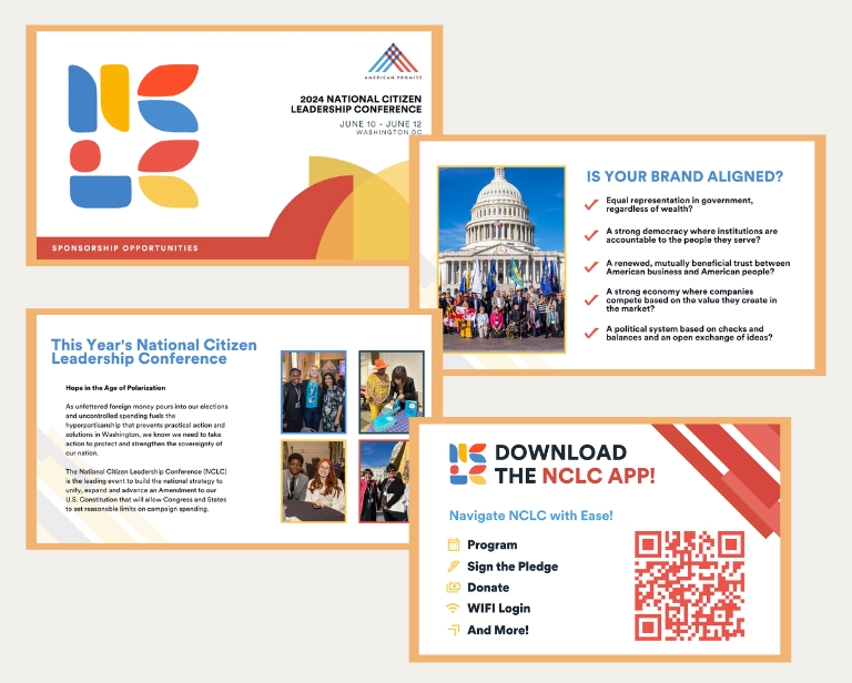 American Promise National Citizen Leadership Conference (NCLC) is a yearly conference that allows room for more creative sub branding. I was responsible for designing the official conference logo for 2024 as well as all of the visual assets for 2020-2024.